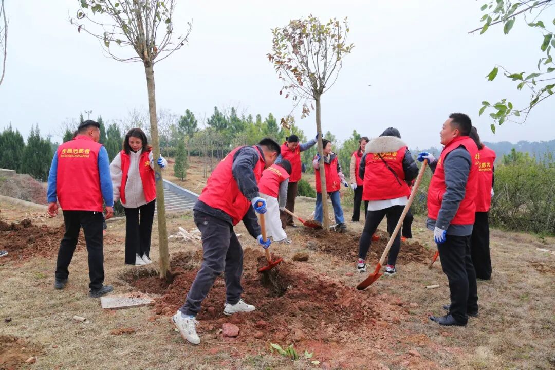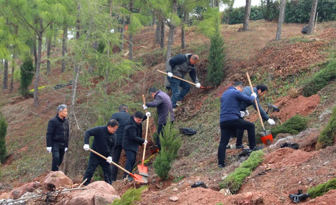 当天,13个乡镇(区)同步开展植树造林,全县5000余名干部群众参加义务植树活动,共种植桂花、栾树、雪松、塔柏、大叶女贞等50000余株,造林面积720亩,形成党员带头、企业助力、社会支持、群众参与的全民爱绿植绿护绿的良好氛围。