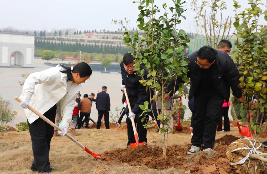 在全县义务植树主现场,干部群众挥锹铲土、扶苗培土、默契配合,认真细致地完成植树工序,一棵棵树木迎风招展、昂扬挺立,在春风中迸发出勃勃生机。
