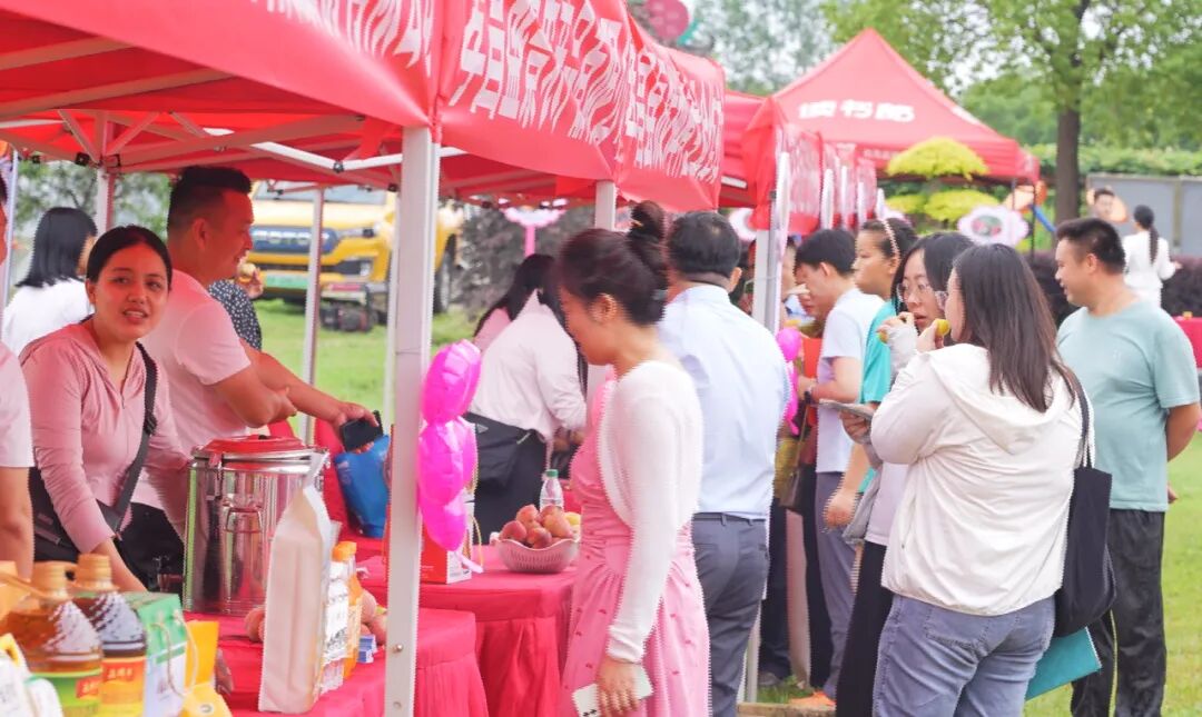 桃文创产品展示区、农特产品展示区、电商直播区人头攒动,热闹非凡,不仅展示了以桃文化为主题的各类创意产品,让桃的韵味融入生活点滴,更将孝昌的甜蜜滋味和优质农特产品,通过云端送到千家万户。