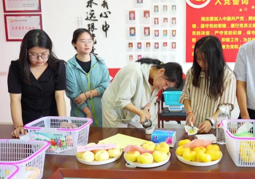 此次大赛面向全县桃农征集参赛鲜桃,共有孝昌血桃、黄金蜜蟠、中油蟠桃、风味皇后等优质品种参与评选。展台上,一个个颜色红润、个头饱满的血桃,黄澄澄、油亮亮的蟠桃,让人垂涎欲滴,现场弥漫着令人“桃”醉的甜蜜气息。品桃会特别邀请了湖北省农科院专家聚焦“比重量、比甜度、比口感、比外形”四个维度,使用专业仪器对参赛桃子进行数据测评。经过多轮考量,综合参赛孝昌鲜桃的“颜值”和“内涵”,最终,以七仙红桃园的孝昌血桃、孝丰生态的红肉油桃和中油13号、红菱生态的黄金蜜1号、昌丰生态的中油蟠桃、静亿农产品的血桃夺得本次大赛金奖。
