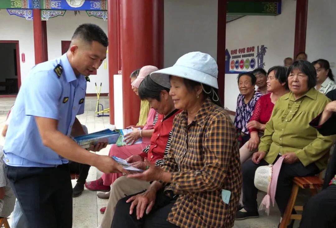 活动现场,工作人员通过“案例讲解+资料发放”多形式普及安全知识。在防电诈宣传区域,工作人员结合实际案例,详细讲解了常见的电信诈骗手段,并向村民发放了防电诈宣传手册,指导他们下载安装“国家反诈中心”APP,开启预警功能,筑牢“技防+人防”双防线。