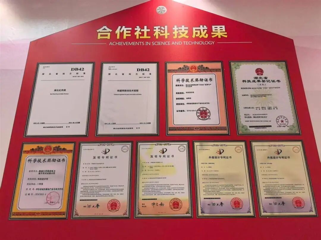 品种好,还要种得好。产业园联合专家取得发明专利3项、新型实用专利8项、科技成果3项、参与湖北省地方标准制定5项。开心形整形、聚土起垄栽培、避雨栽培等新技术让桃园巧做“加减法”:亩产降至3000斤,优质果率增至90%以上,价格高出市场价60%。