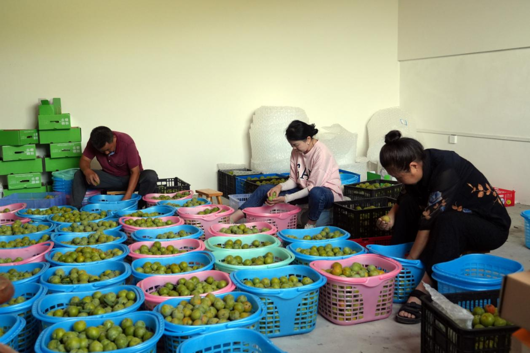 该基地自2020年种植蜂糖李,现有210多亩,这里产出的蜂糖李果实肉质细腻、汁多耐储,货架期长,品质优势显著。眼下采摘期,每天十余名工人忙于采摘、分拣。果园主要通过线上销售精品礼盒,线下供应百果园、山姆、盒马等生鲜超市,市场供不应求。