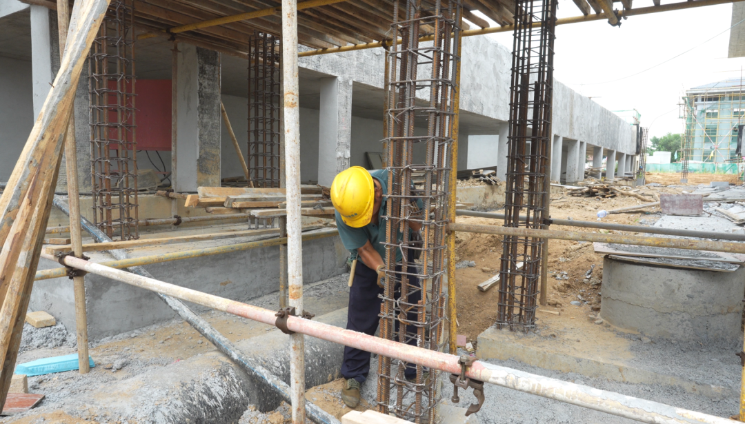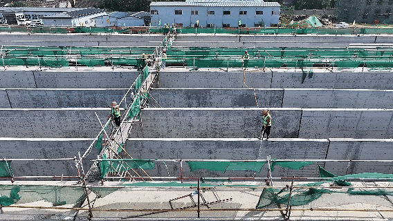 走进位于陡山乡进锋村的二水厂施工现场,一派繁忙景象映入眼帘。工人们头戴安全帽,身着工作服,正克服高温,专注地进行厂区路面平整、反冲洗泵房顶瓦面铺设、综合楼内墙装修以及池体清理等工作,各环节衔接有序,高效推进。