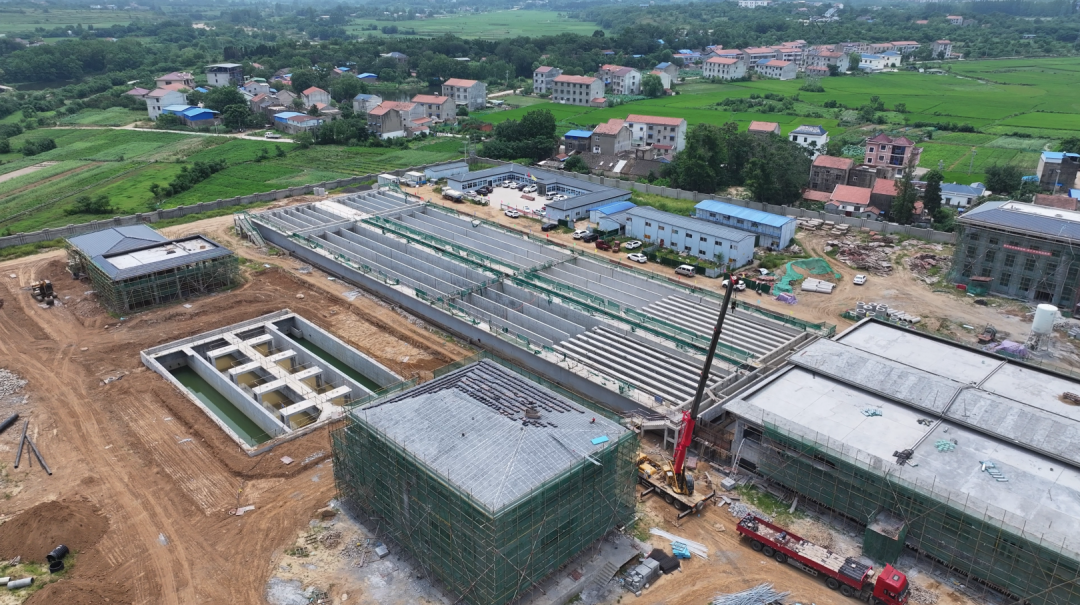 “目前已完成送水泵房、V型滤池、平流沉淀池、反冲洗泵房、综合楼等14个单体结构的主体及砌体工程。当前施工重点集中在综合楼、配电间、传达室等8个单体的装饰装修,以及V型滤池、平流沉淀池等4个单体的工艺、机电设备安装。厂区内部主要供水管网已基本铺设完毕。下一步将全力冲刺工艺设备安装调试,并同步完善厂区道路、绿化和供电等配套工程。”孝昌二水厂EPC总承包施工现场负责人饶红俊说。
