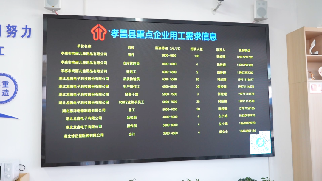 对于乡镇(区)就业服务,孝昌县依托村(社区)党群服务中心,为各乡镇配备了专职人社信息员、网格员(人社专员),全面准确地更新劳动力资源信息,积极向群众推荐合适的用工信息,让乡镇群众也能享受到贴心周到的就业服务,有效打通了就业服务的“最后一公里”。