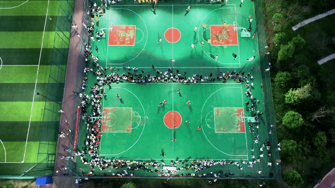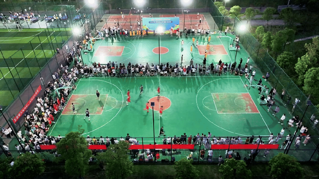 严密防守、快速反击、持球突破、远投三分……比赛中,每支球队都展现了高超的竞技水平、默契的团队配合,双方你来我往,不断上演精彩对决;场上比分胶着,场下观众呐喊助威声此起彼伏,赛场气氛十分热烈。