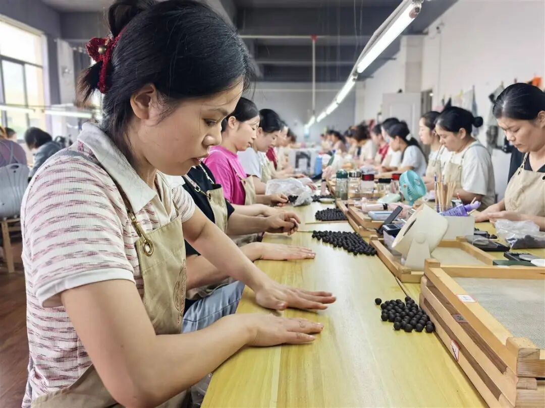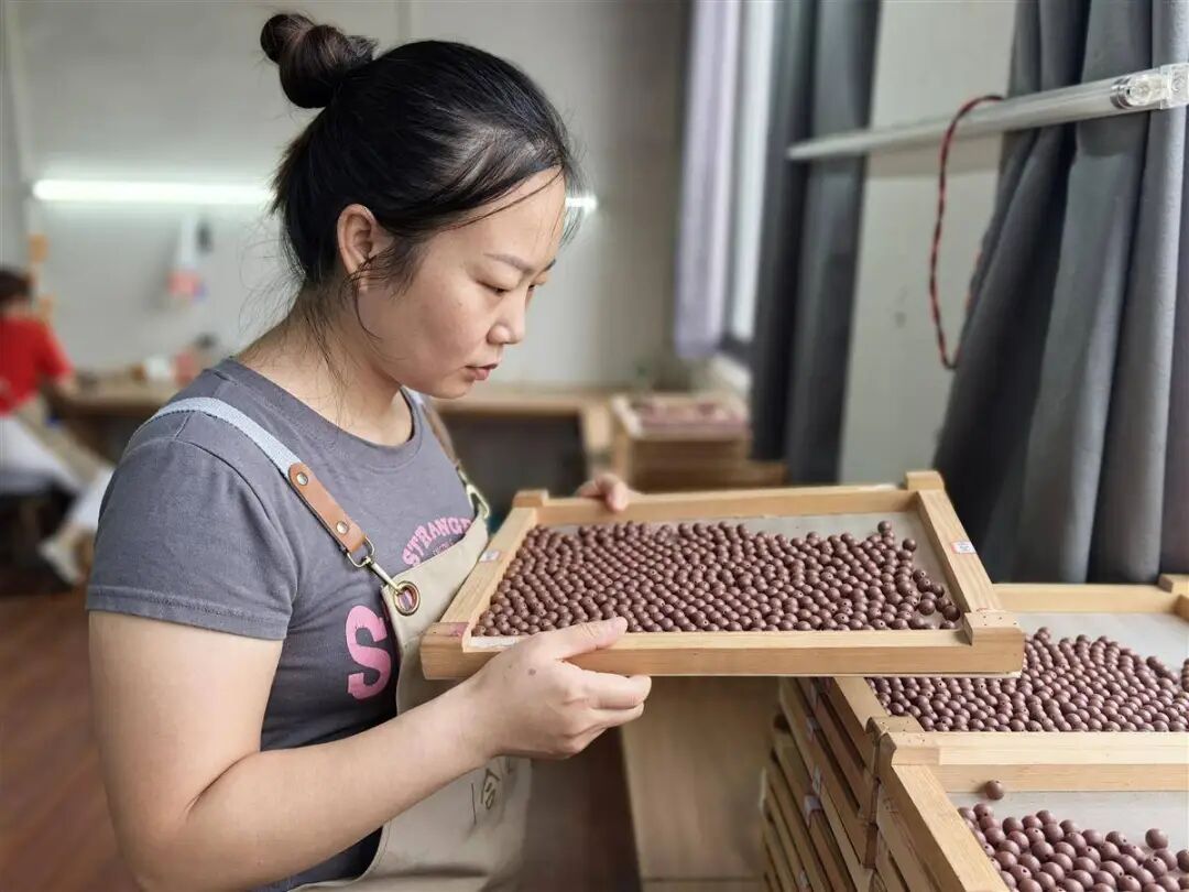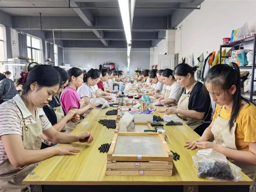 走进该公司生产车间,几十位宝妈正娴熟地搓制香珠,空气中弥漫着中草药特有的香气。创始人聂恋仔细检查着每一道工序,从选材、炮制到加工,全部遵循古法纯手工制作。
