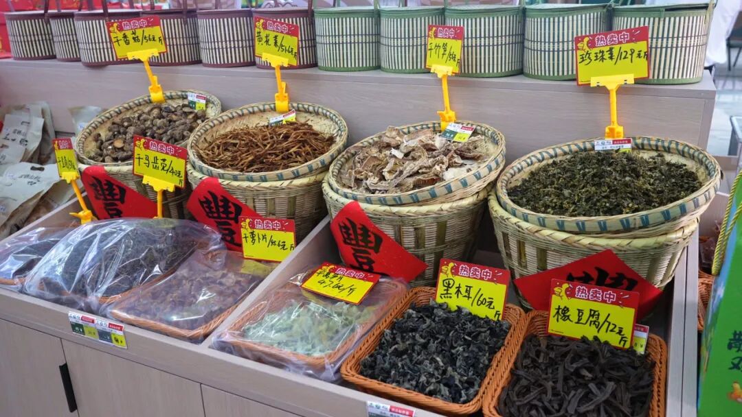 在孝昌县土特产专馆,小悟珍珠菜、太子米、土鸡蛋、茶叶等优质农产品荟萃一堂,吸引众多市民前来咨询和购买,现场热闹非凡。