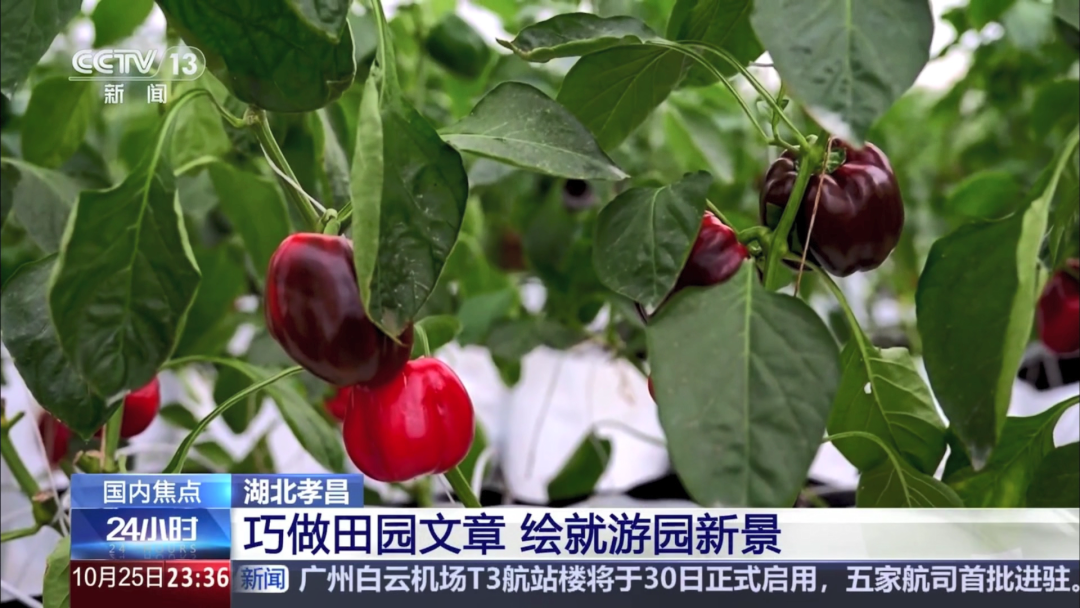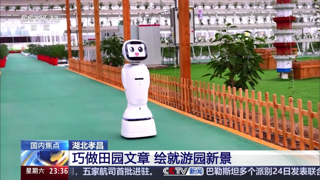 在孝昌九丰智慧农业产业园,10万平方米的智能温室犹如一座现代化的“植物工厂”。彩椒艳丽、南瓜硕大、小番茄晶莹,这些作物通过精准的水肥供给系统,展现着科技农业的独特魅力。智能解说机器人“旺宝”自如穿梭在作物之间,这位特殊的“技术员”不仅为游客答疑解惑,更成为智慧农业的生动代言。