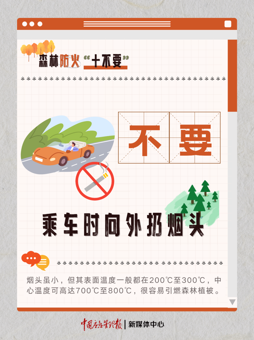 注意!牢记“十不要”! 2025-11-05 09:41 0 每年11月1日至次年4月30日 为森林重点防火期 每个人都需要增强防火意识 请全体居民朋友做到 森林防火“十不要”! 森林防火,人人有责! 来源:中国应急管理报社新媒体中心