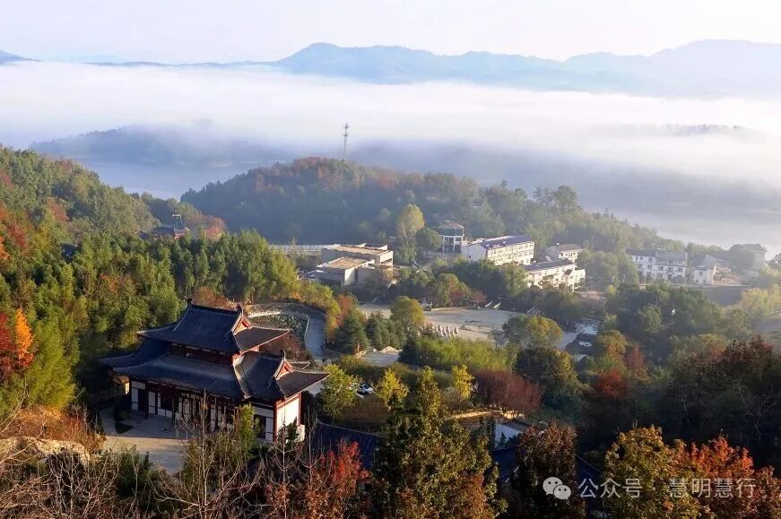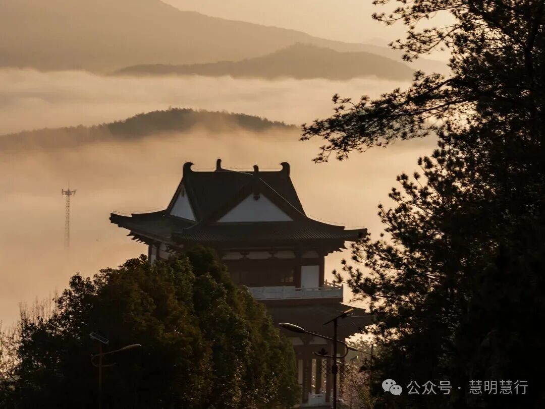 站在观景台远眺,古朴的建筑、静谧的村落与流动的云海相映成趣。