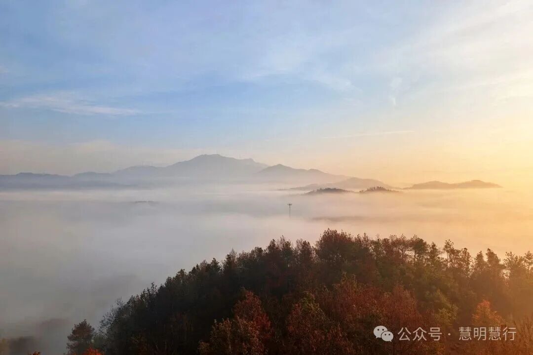 最令人心动的是云海与秋林的同时登场。层林尽染的斑斓秋色叠加云海翻腾的壮观景象,堪称大自然的“神仙组合”。此刻快门一按,原图直出都是氛围感大片。