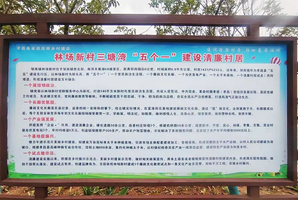 培育清廉风尚,营造崇廉尚洁氛围。积极推动廉洁理念融入乡村治理实践,全县所有村(社区)将廉洁要求纳入村规民约。创新运用“积分制”“红黑榜”等治理模式,激发村民参与清廉建设的内生动力。构建多元化宣教矩阵,组织开展“清廉村居”主题活动,利用新媒体打造“云上清廉村居”宣传阵地,持续实施“5115”典型培育工程。深度挖掘本地红色文化与历史资源中蕴含的清廉元素,推动3个村成功获评省级清廉村居示范村,着力打造具有孝昌特色的清廉文化品牌,进一步筑牢基层党员干部廉洁自律的思想防线,积极营造“以清为美、以廉为荣”的乡风民风。