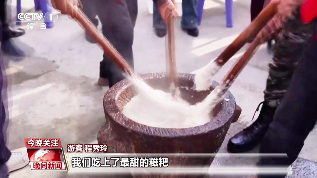 现场手工打制的糍粑,米香扑鼻,腊肉、豆丝等本地特产琳琅满目,熟悉的家乡味道唤起了人们的记忆。