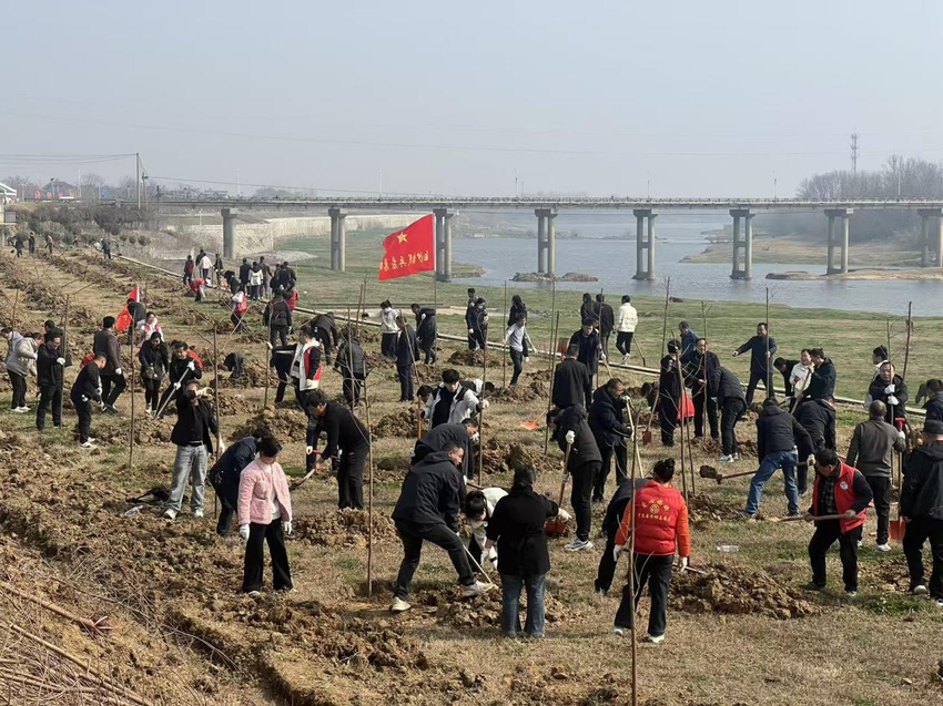 为深入践行生态文明思想,扎实推进绿美乡村建设,3月10日,孝昌县白沙镇在白沙大桥澴河河堤边集中植树点开展春季义务植树活动。全镇机关干部、驻村工作队、村干部、巾帼志愿者、民兵队伍等共计200余人共同参与,以实际行动为家乡厚植生态底色。