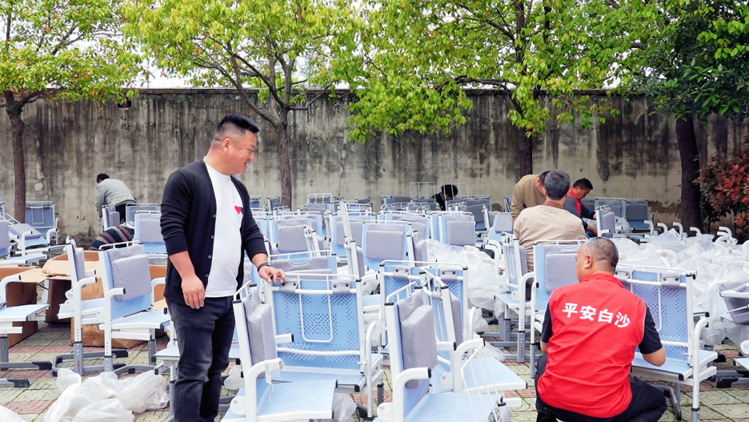设备运抵学校当日,一场自发的义务劳动在校内悄然展开。周边群众、学生家长、街坊邻里纷纷闻讯赶来,主动投身到桌椅安装工作中,拆包、组装、调试,大家分工协作、有条不紊,用双手传递着对乡村孩子的关爱与温暖。