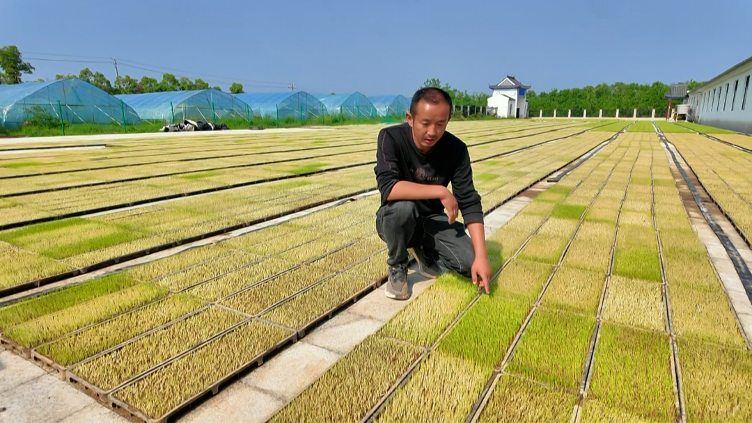 “这5600盘秧苗是邻村种植大户向我们订购的第二批育秧订单,目前长势不错,预计5月上旬就能将这批订单交付了。”孝昌县高岗种植专业合作社负责人盛运熊一边观察着水稻秧苗的长势,一边说道。