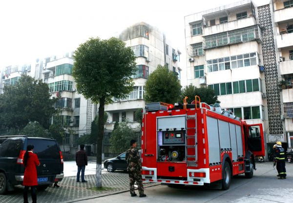 就在施先生拨打报警电话的同时,60多岁的干部家属丁大妈从学校接孙子回来,也发现该宿舍楼西栋一单元6楼东的刘先生家起火,赶紧拨打了户主刘先生的电话。在附近办事的刘先生接到电话后,立即赶来回来打开了家门。刚好孝昌县消防中队的2台水罐车,和12名官兵及时赶到了现场。