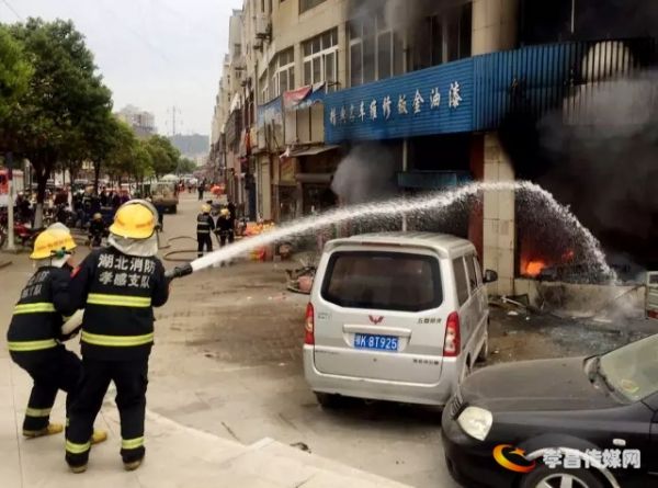 当日下午5时15分许,孝昌消防中队接到该县新城区府东路某汽车维修点报警称,该店1楼门面房燃起大火。里面堆满了可燃材料,浓烟很大。接到报警后,该消防中队立即出动了3台水罐车和12名官兵赶到了现场。指挥人员了解到,1楼门店起火时,店子里只有1人看守,无人员被困。
