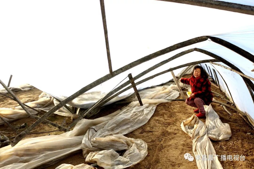 “下了一晚上的雪,等于一晚上都没睡觉,始终在顶雪,就是用棍子在大棚里面,把大棚上的雪顶掉。我家有4个大棚,种植大棚蔬菜的面积比较大,而且只有我和老伴韩云凤2个人,根本就忙不过来。”新街村四组63岁的贫困户杨明生说:“由于我们年纪较大,体力有限,尽管使出全力把大棚上的雪顶掉,但还是顾不过来,好在4日凌晨村主任唐燎燃,和村里的一名党员赶过来帮忙,总算保住了蔬菜的苗床棚,而其余的3个大棚都被积雪压塌了”。