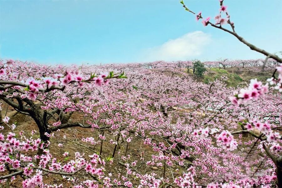 用铺天盖地的七仙红桃芬芳,看彩云连绵祥云