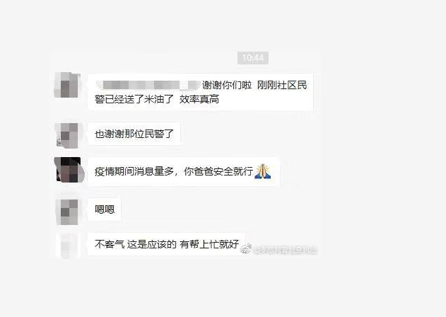 1月31日,孝昌网警工作人员发现,有网民在微信群中为家中老人缺少物资求助。