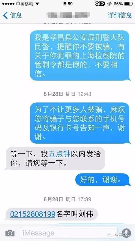 10月11日,孝昌县公安局刑侦大队接省厅反诈骗中心指令:犯罪分子正在对孝昌籍人员张女士实施诈骗。刑侦大队迅速对张女士相关情况进行调查,并和其户籍地小河派出所取得联系。经队所协作联系上张女士,并成功制止,为其挽回了经济损失。