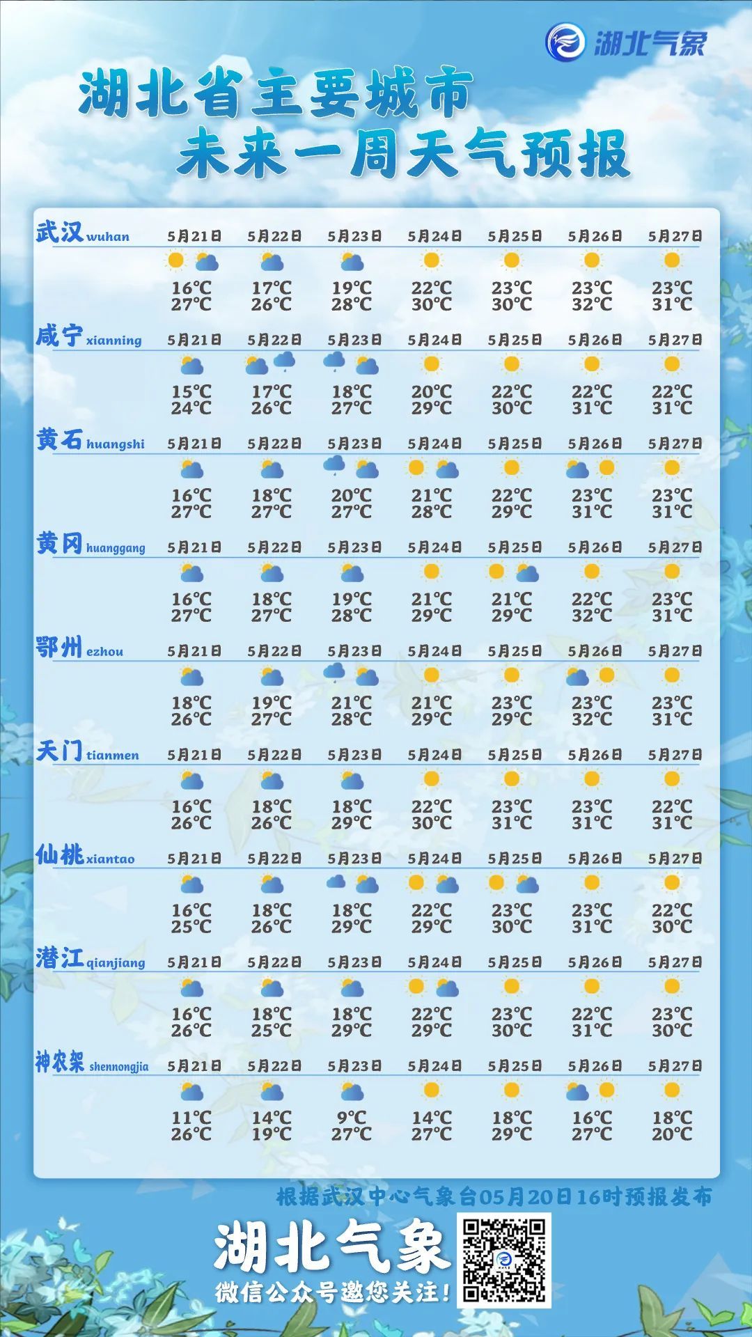 湖北未来一周天气预报