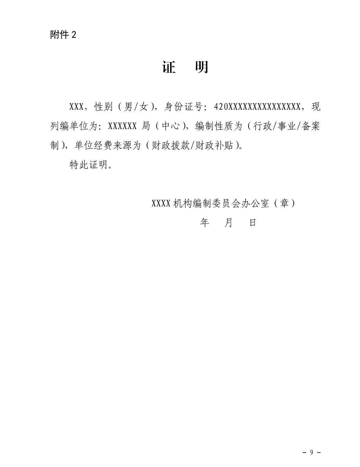 2.在编证明(式样)