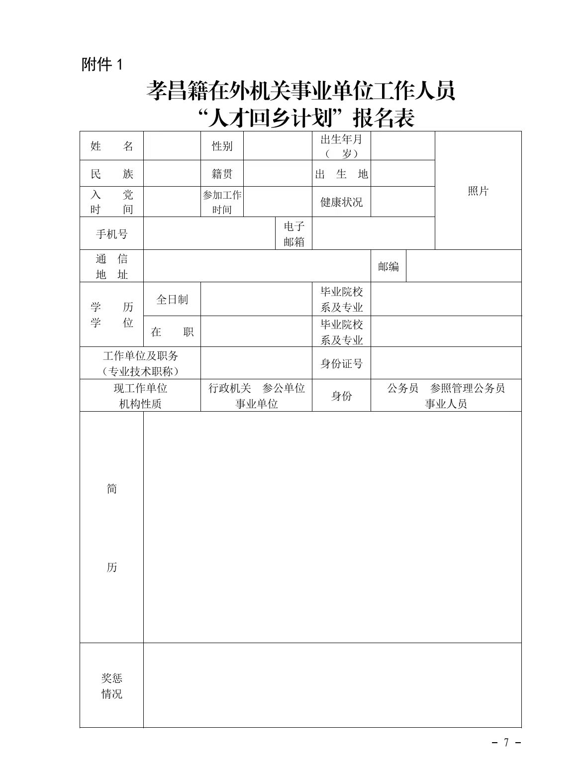 附件:1.孝昌籍在外机关事业单位工作人员“人才回乡计划”