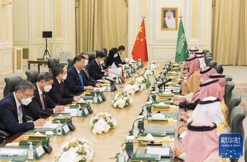 穆罕默德首先代表萨勒曼国王对习近平到访表示热烈欢迎,对中共二十大成功召开以及习近平主席再次当选中共中央总书记表示衷心祝贺。