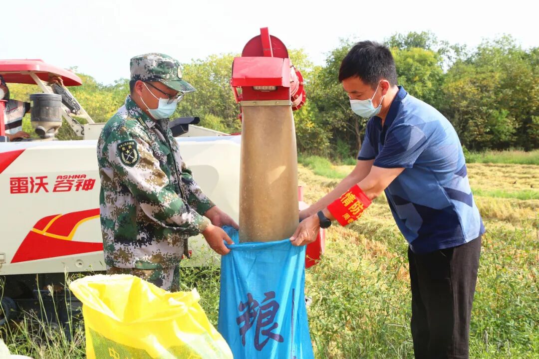 当天中午,稻收小分队联系的农机手准时抵达。镇村党员干部、志愿者们顶着高温,不顾烈日暴晒,分工合作。经过一下午的奋战,村里10家农户的12亩水稻收割完毕。村民居家隔离,晾晒稻谷又成了问题。小分队商量后决定,村民有院子可晾晒的,自行晾晒;没有院子的,由小分队分工,轮流帮忙晾晒,确保稻谷颗粒归仓。