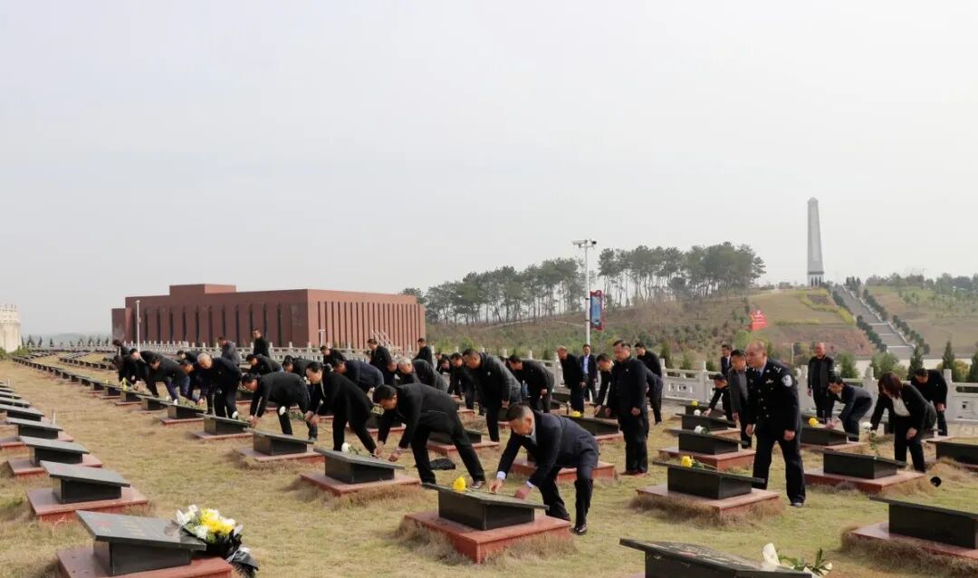 怀着崇敬的心情,全体党员干部集体前往陵园墓区敬献鲜花,听讲解员讲述先烈们为抗战胜利、民族解放抛头颅、洒热血的英雄故事,集体重温过去的峥嵘岁月。