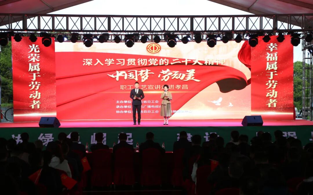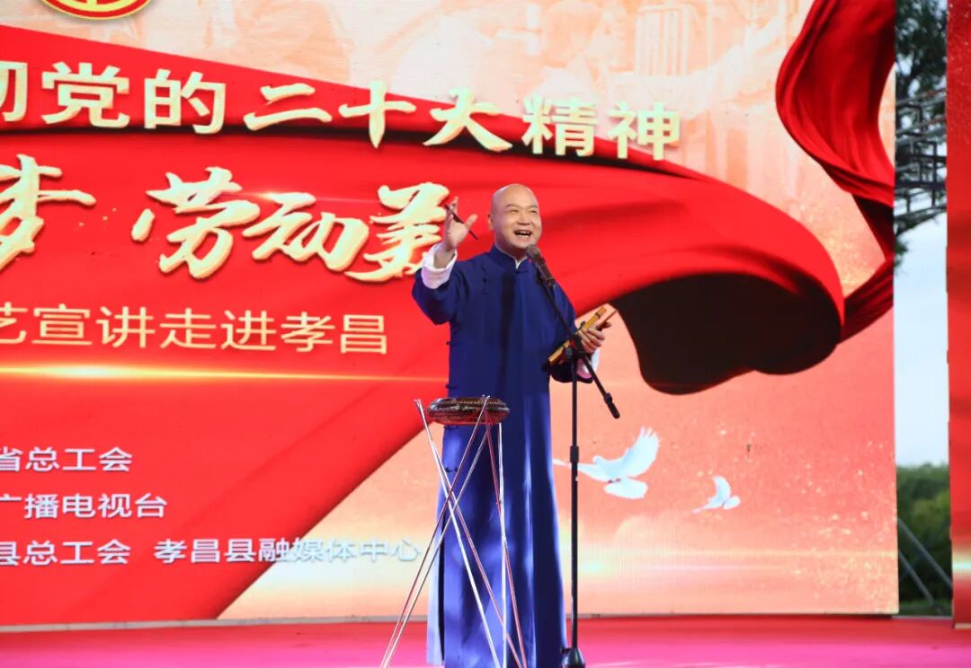 4月23日,由湖北省总工会主办、湖北广播电视台承办、孝昌县总工会、孝昌县融媒体中心协办的深入学习贯彻党的二十大精神“中国梦•劳动美”职工文艺宣讲在孝昌县周巷镇精彩上演。整场活动通过长江云、九头鸟FM、湖北省总工会视频号、云上孝昌APP、看孝昌APP等网络平台进行现场直播,采取文艺演出的形式进行宣讲,用文艺传递党的声音,诠释党的二十大精神。