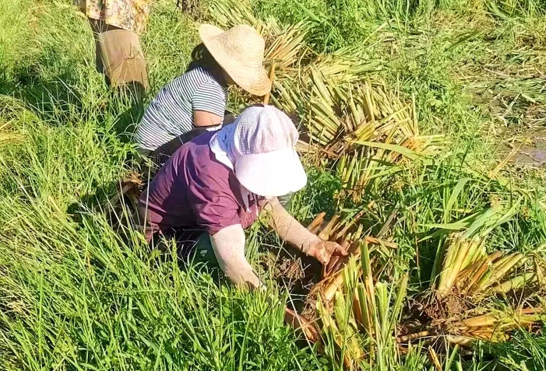 “在这个基地打工,一天能挣120元,离家近,还能照顾到家人。”水田里,国庆村村民陈木华一边种茭白一边笑着说道。